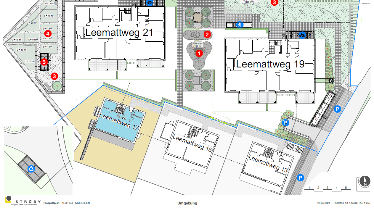 Auf knapp 500m2 steht das Haus mit rund 100m2 Grundfläche. Dank der direkt angebundenen Tiefgarage kann diese Aussenfläche voll genutzt werden.